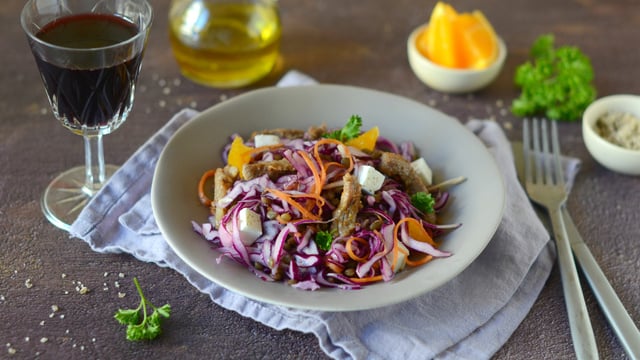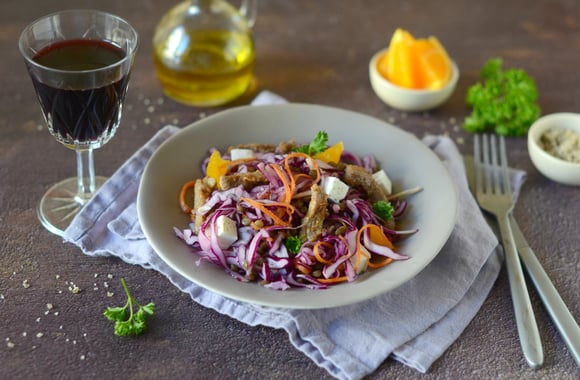 Une salade de saison vitaminée et originale aux agrumes et à l'agneau IGP du Périgord.