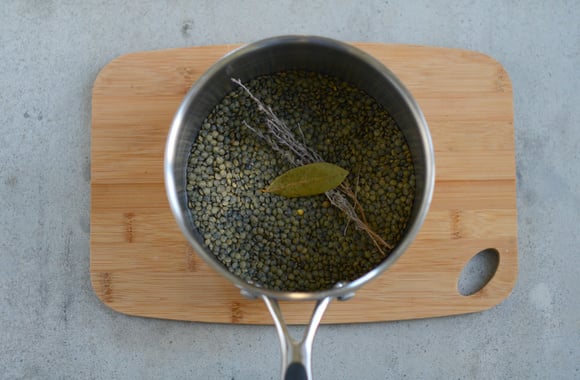 3Versez les lentilles dans une casserole et couvrez de 2 verres d’eau.