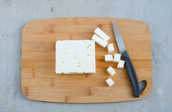 9Servez aussitôt en ajoutant le persil haché, les dés de feta, les lamelles d'agneau.