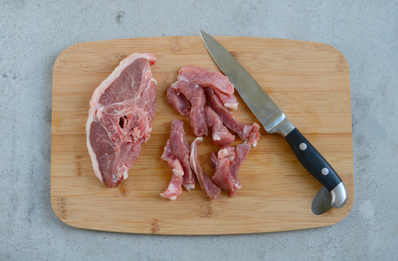 1Coupez les filets d'agneau du Périgord en lamelles.