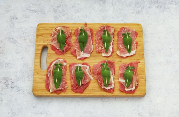 3Déposez une feuille de sauge sur le jambon. Fermez délicatement avec un cure-dent.