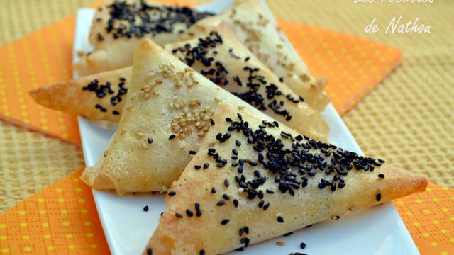 Posez les samoussas sur la plaque du four et badigeonnez-les d'huile d'olive. Parsemez de graines de sésame.