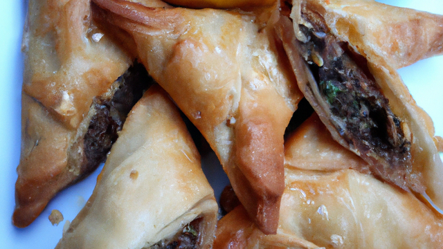 Ajouter les fruits. Bien mélanger et rectifier l'assaisonnement. Déposer les feuilles de brick sur le plan de travail. Les tailler en quatre bandes. A l'aide d'un pinceau, les badigeonner d'huile (ou de beurre fondu). Répartir une cuillère à café (ou plus) de préparation sur une des extrémités de chaque bande. Plier les bandes pour former des samoussas en triangle.