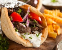 Traditionnellement, dans les pitas du sandwich grec classique, vous pouvez trouver du porc, du bœuf ou de l'agneau. Si vous n'avez aucune de ses viandes au frigidaire, vous pouvez aussi réaliser cette recette avec des blancs de poulet. En termes de garniture, vous allez mettre des tomates ainsi que des oignons. Afin de lui donner de la fraîcheur, vous allez tartiner vos deux pain pitas avec du tzatziki. Si vous avez le temps, vous pouvez préparer le tzatziki vous-même. pour ce sandwich grec, tout ce dont vous avez besoin, c'est d'un concombre, de fromage grec, d'ail, mais aussi de menthe. Enfin, en guise d'accompagnement, vous pouvez proposer une portion de frites. C'est un délice !