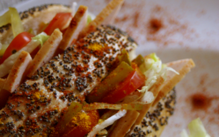 dinde, laitue, tomates cerise et raisin avec des graines de pavot