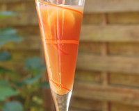 Dans un saladier, mélanger les jus de fruits et le sirop.