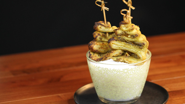 Etaler la pâte feuilletée et la recouvrir de pesto.