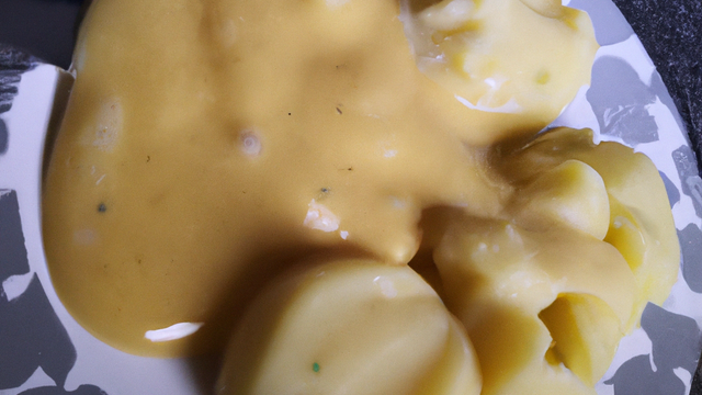 Pommes de terre en cube revenues à la poêle liées à la farine avec une tranche de jambon vendéen braisée