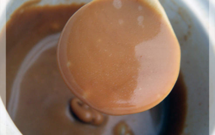 Faites cuire, en remuant, la préparation obtenue à feu doux jusqu'à ce que le caramel épaississe et obtienne la consistance désirée, puis versez-le dans un ramequin et laissez refroidir à température ambiante.