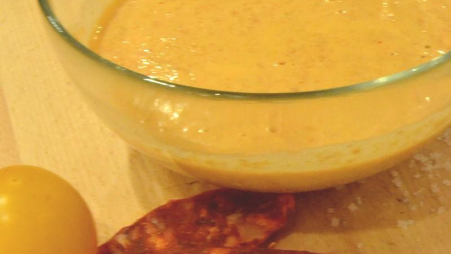 Quand la sauce est bien infusée au chorizo, mixez et passez au chinois pour obtenir une sauce bien lisse. Vérifiez l'assaisonnement.