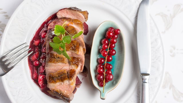 Enfin de cuisson, ajouter le reste du beurre et une belle cuillère à soupe de gelée de groseilles.Régler sur vitesse 4 pour 2 minutes 30 à 90°C. Saler et poivrer selon les goûts. Mixer 15 secondes vitesse 8. Servez bien chaud avec une viande rouge, un magret de canard ou du gibier.