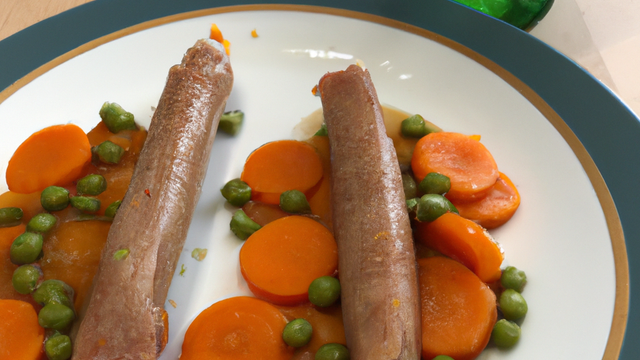 Servir les pommes de terre et les saucisses accompagnées de leurs légumes.