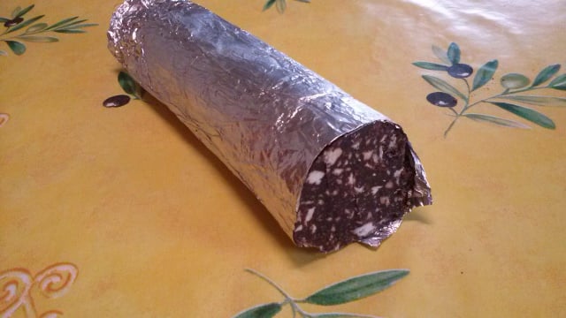 Un excellent saucisson à base de chocolat, de petits beurre et de sucre glace !