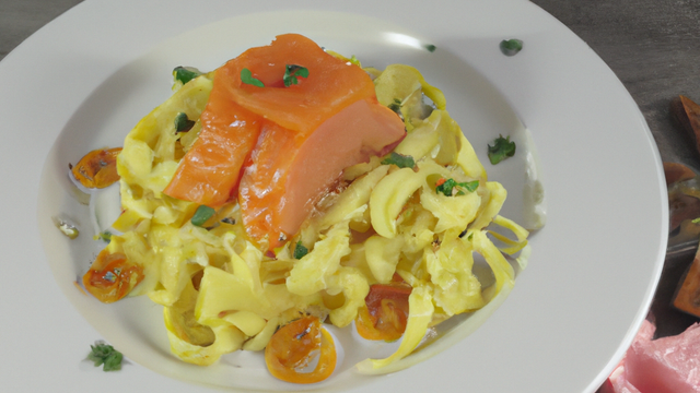 Au bout de 20 à 25 minutes de cuission le saumon est pret à être découvert. Lorsque les tagliatelles sont pretes, placez les dans l'assiette (au milieu) ajouter deux cuillères (ou plus) à café de sauce créme citron basilic sur ces dernières et poser le pavé (dans chaques assiettes) directement sur les pates.