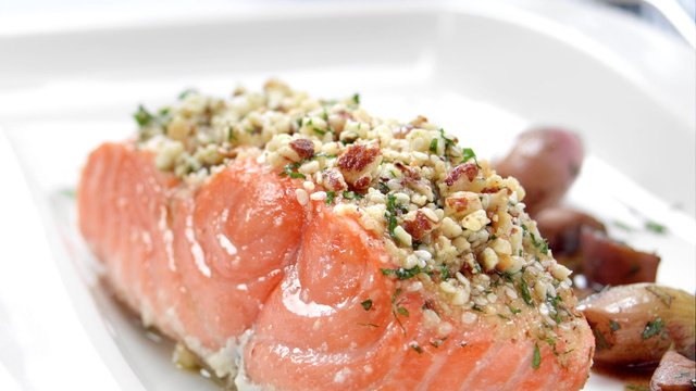Ajouter le tout sur les filets de saumon.