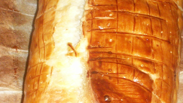 Une dernière couche du mélange poireaux/beurre d'escargot et on rabat la pâte. On ferme la pâte et le tour est joué.