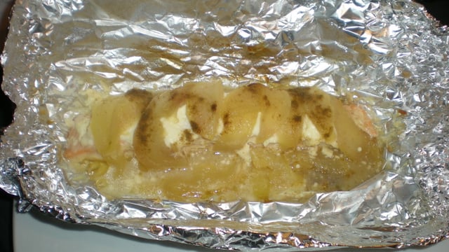 Découpez deux feuilles de papier d'aluminium et déposez sur chacune d'elle un pavé de saumon