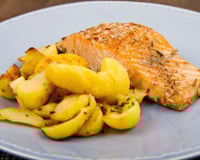 10 minutes avant la fin de la cuisson des pommes de terre, mettre le saumon au four. Laisser cuire environ 10 minutes.