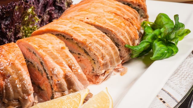 Ce plat est parfait servi avec du citron ou une sauce citronnée et accompagné de pâtes fraîches ou de pommes de terre vapeur.