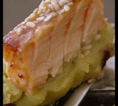 Disposer les pavés sur une plaque, verser la marinade restante et saupoudrer de sésame.