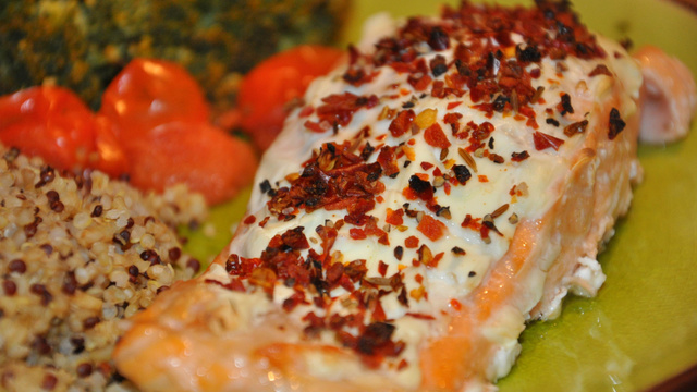 Déguster avec 100g de mélange de Quinoa gourmand et des brocolis vapeur et tomates cerises.