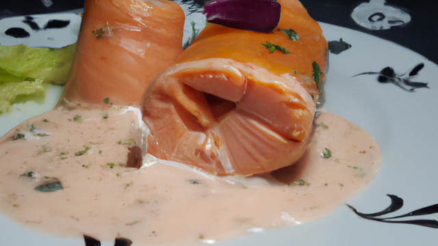 Un saumon roulé avec de la ciboulette et sa sauce chicorée.