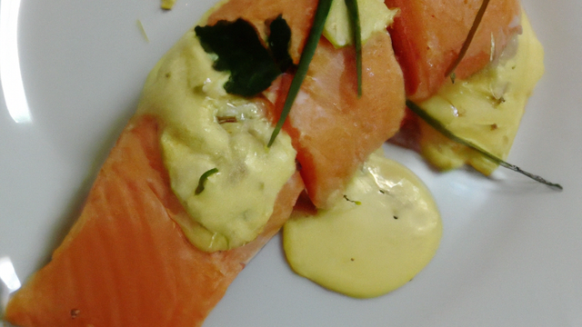 Saumon cuit à la poêle à l'unilatérale avec sa sauce au beurre blanc à la vanille.