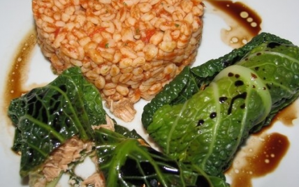 Verser cette sauce sur les roulés de chou et servir avec du blé à la tomate en accompagnement...