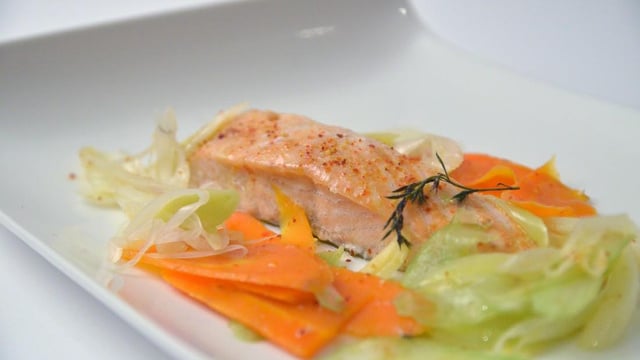 Cuire le saumon rosé pour qu'il ne soit pas sec. Ajouter un filet de citron en fin de cuisson, pour apporter une petite acidité qui contrebalance bien la chair un peu grasse du poisson.