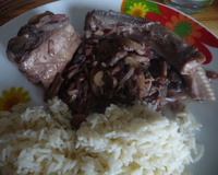 3 dl de vin rouge de Bourgogne (j'utilise, comme pour le bœuf Bourguignon, du Passetout grains !)