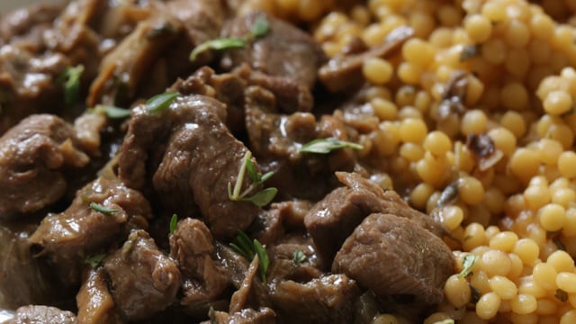 Un bon plat familial réconfortant bien parfumé à base de boeuf et de cèpes séchés , de thym et de vin blanc.