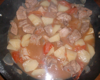 Faire revenir la viande avec un morceau de couenne assez épais (10 cm) pendant 10 minutes à feu vif.