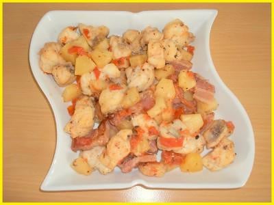 Une fois l'ensemble bien cuit, incorporez les dés de tomates et les morceaux d'ananas et mélangez le tout. Laissez chauffer environ 5 à 10mn puis servez de suite.