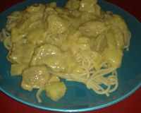 Ajouter un peu d'huile d'olive, le jus de la boite d'ananas, 10 cl de jus ananas, 1 cuillère à café de curry, 1 cuillère à café de gingembre moulu, un peu de paprika et mélanger.