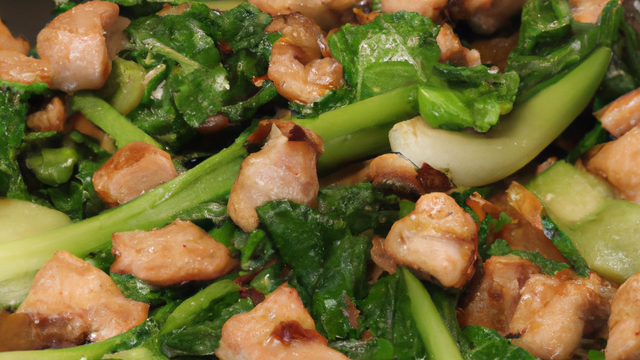 Ajouter les feuilles de bok choy et le soja frais, remuer 2 min et ajouter la viande. Remuer 1 min.