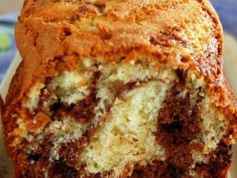 Dans un moule à cake individuel, verser les deux mélanges en alternant.