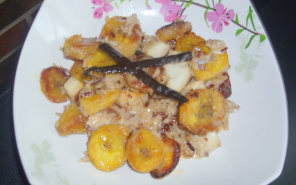 Ajouter le riz, les morceaux de noix de coco et faites réchauffer doucement.