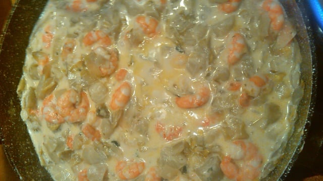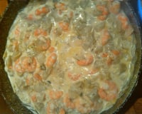 Lorsque le boursin est fondu, rajouter les scampis et terminer la cuisson.