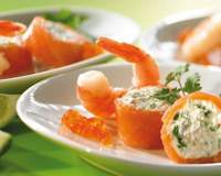 - 5Présentation :Quelques oeufs de lompe feront un joli contraste de couleurs, une rose en tomate cerise, quelques fleurs de radis et des quartiers de citron complèteront la présentation.