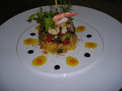 Confectionner une cuisson planchajuste saisir les crevettes et sèches à la plancha jusqu'à coloration (sur une plaque chaude) . Assaisonner, réserver.