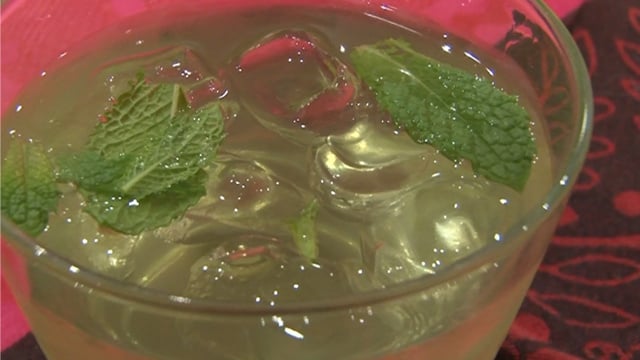 Quand le sirop est prêt, hors du feu, versez les feuilles de menthe dedans, remuez et couvrez.