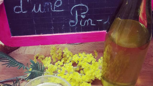 Mélangez le jus de citron et l’eau et versez les sur les fleurs de mimosa que vous écraserez avec les doigts. Couvrez et laissez macérer toute la nuit.