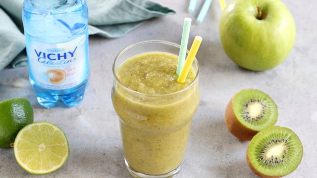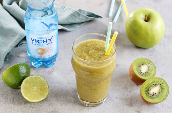 LE + VICHY Célestins: Un cocktail frais, pétillant et riche en vitamine C, idéal pour se rafraîchir en été avec les minéraux de VICHY Célestins.