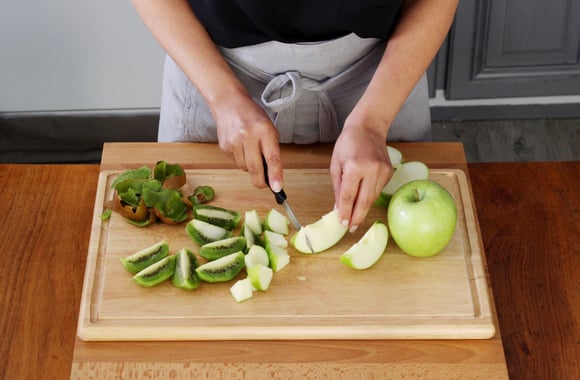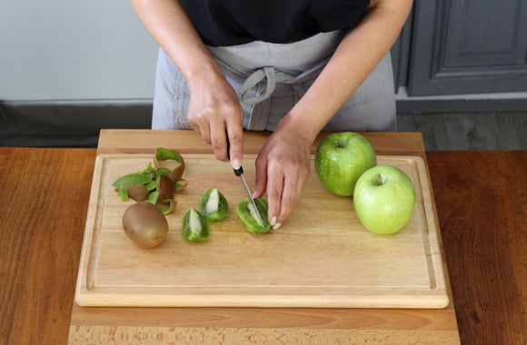 2Epluchez puis coupez les kiwis en 4.