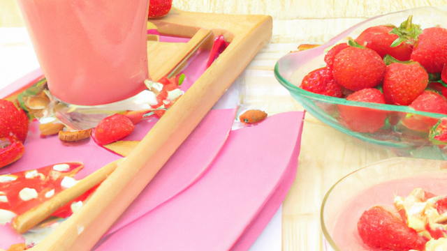 Laver, équeuter et couper en dès les fraises. Les mettre dans le blender, ajouter le lait d'amandes et le yaourt, bien mélanger.