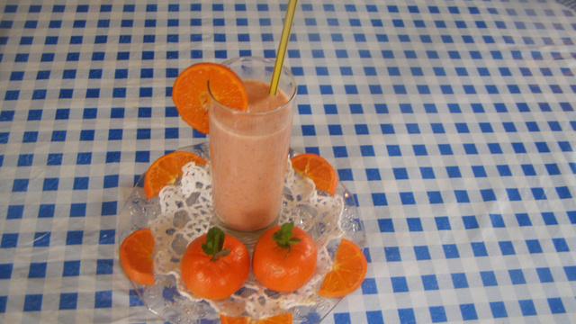 Mixez le tout ensemble Mixez pendant 2 à 3 mn le tout et servir. Vous pouvez aussi ajouter de la glace pillée pour obtenir une boisson plus fraîche.