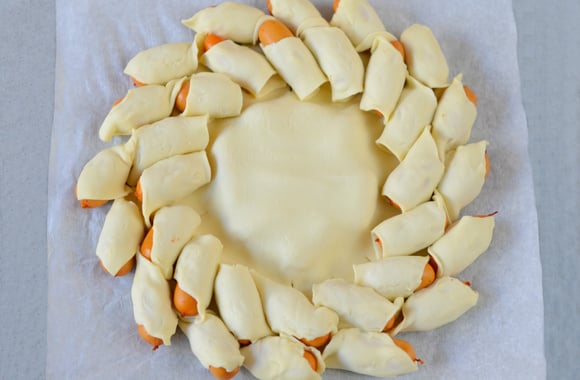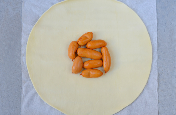 Déposez au milieu 8 saucisses cocktail.