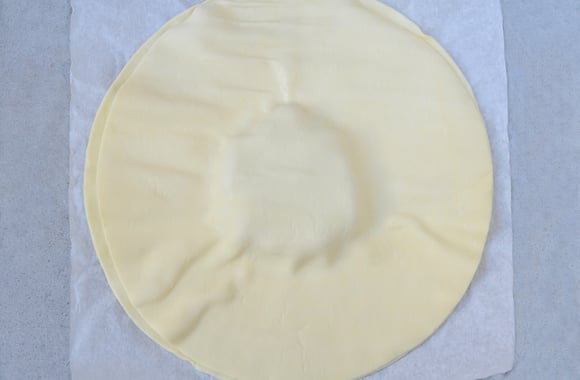 Placez la première pâte feuilletée sur une plaque recouverte de papier sulfurisé.