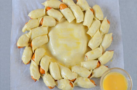 7Badigeonnez soigneusement le soleil feuilleté d’œuf battu.