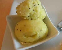 Déguster de suite ou mettre le sorbet dans un récipient hermétique et le placer au congélateur.